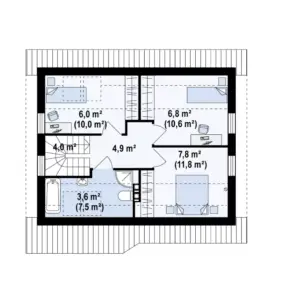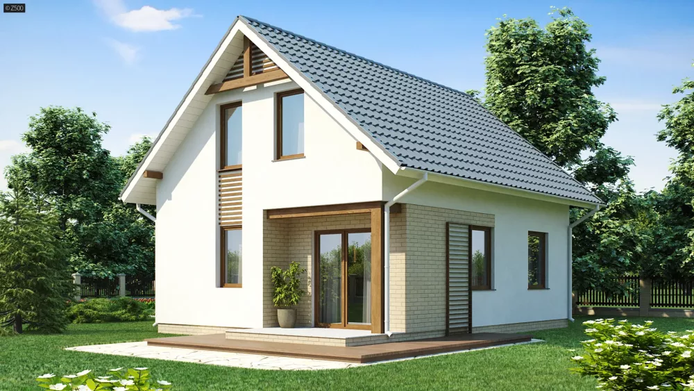 Projekt Z71 to kompaktowy i funkcjonalny dom z poddaszem użytkowym, który łączy wygodę codziennego życia z rozsądnymi kosztami budowy. Mimo niewielkich wymiarów oferuje aż 74,5 m² powierzchni użytkowej (99,5 m² netto) oraz przemyślany układ pomieszczeń dla całej rodziny.